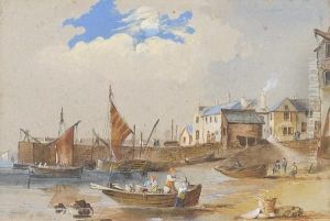 View Of Plymouth Hoe, With Soldiers Loading Cannon To Salute Thearrival Of The Flagship And With Spectators Watching Theevent