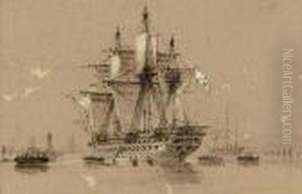 A Russian Man-o'war And Other Warships Lying In The Hamoaze,plymouth (illustrated); And A Royal Naval Frigate Under Full Sailin The Channel