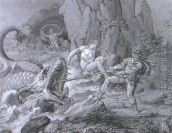 Perseus And Andromeda Oil Painting - Conrad Martin Metz
