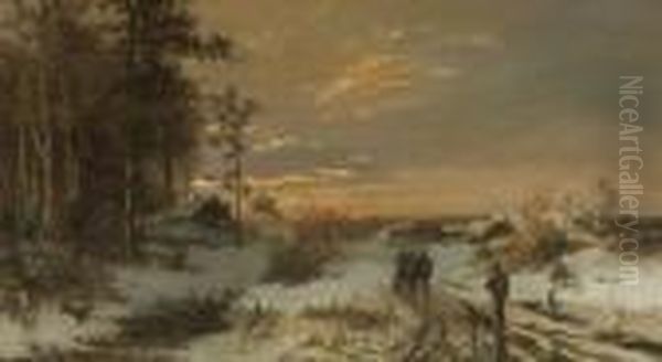 Heimkehrende Jager In Winterlandschaft.
