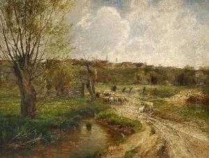 Bring the timeless beauty of Conrad Wimmer's Sommertag Vor Einem Dorf Im Dachauer Land Bei Aufziehendem Gewitter, Vorne Ein Rastendes Bauernpaar Bei Seinen Kuhen An Der Tranke, Links Ein Spazierganger Mit Regenschirm An Einem Wegkreuz into your home with a handmade oil painting reproduction. Carefully recreated on canvas by skilled artists using traditional techniques, this piece captures the delicate brushwork, subtle light, and vibrant color of the original masterpiece. With museum-level quality and rich texture, it brings elegance and artistic depth to any space. Enjoy free shipping and make this masterpiece a part of your personal collection.