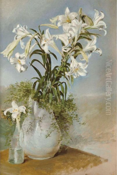 Still Life Of White Lilies In A Vase