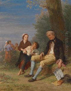 Die Junge Kunstlerin. Grosfamilie Am Strand, Ein Werk Der Begabten Bewundernd