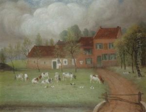 Vaches Au Pre Devant Une Ferme