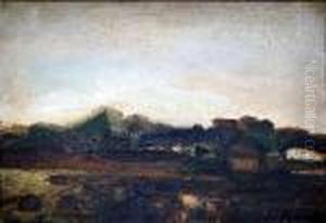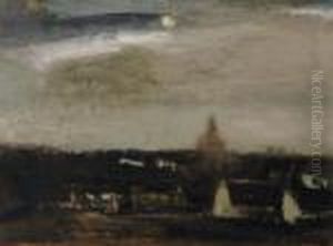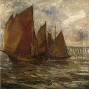 Peniches Accostees Le Long Du Canalhuile Sur Toile Signee En Bas A Gauche.