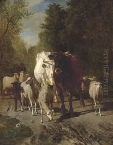 Herd And Herdsmen At The Watering Place In The Wood