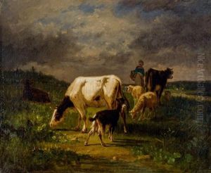 Vaches Et Troupeaux Sous Un Ciel Orageux