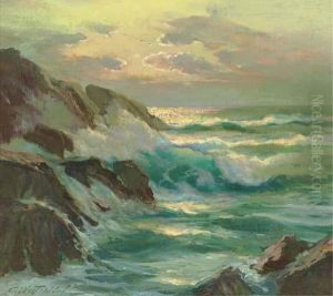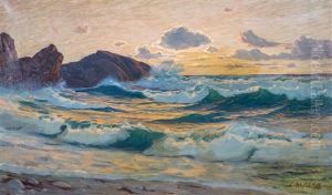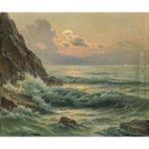 Stimmungsvolle Meeresbrandung Im Abendlicht