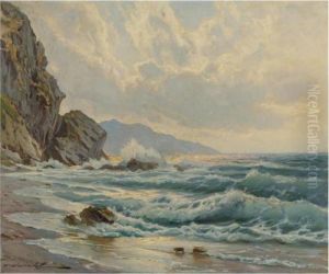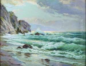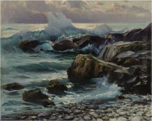 Waves Breaking At The Cliffs, Dusk