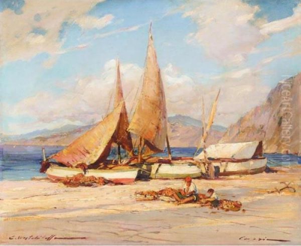 Bring the timeless beauty of Constantin Alexandr. Westchiloff's Mending The Nets into your home with a handmade oil painting reproduction. Carefully recreated on canvas by skilled artists using traditional techniques, this piece captures the delicate brushwork, subtle light, and vibrant color of the original masterpiece. With museum-level quality and rich texture, it brings elegance and artistic depth to any space. Enjoy free shipping and make this masterpiece a part of your personal collection.