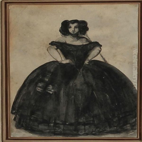 Woman In A Black Crinoline Dress