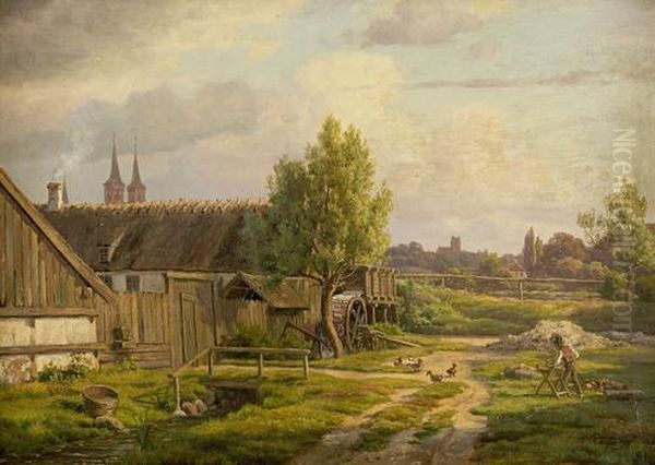 Bring the timeless beauty of Constantin Hansen's Farmstead With Townscape Beyond into your home with a handmade oil painting reproduction. Carefully recreated on canvas by skilled artists using traditional techniques, this piece captures the delicate brushwork, subtle light, and vibrant color of the original masterpiece. With museum-level quality and rich texture, it brings elegance and artistic depth to any space. Enjoy free shipping and make this masterpiece a part of your personal collection.