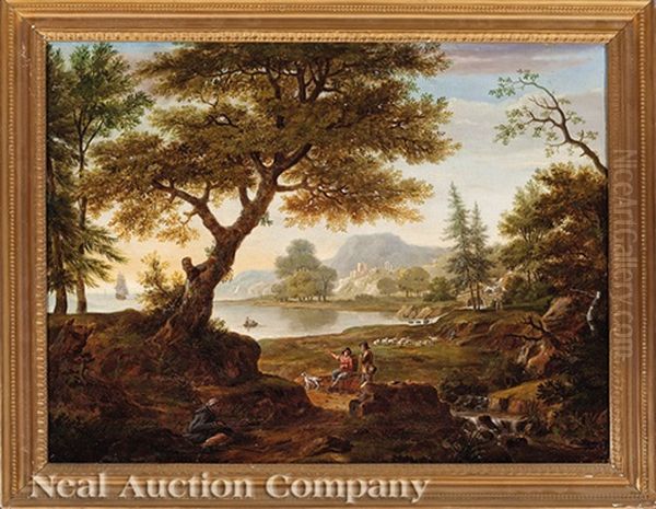 Pastoral Landscape With Shepherds And A Lake