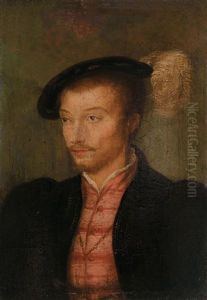 Portrait Of A Man, In A Slashed Jerkin Over A White Doublet In A Black Feathered Cap
