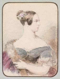 Portrait De Jeune Femme A La Robe Ornee De Colliers De Perles
