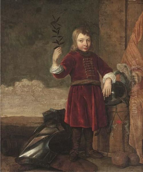 An Allegory Of Peace Overcoming War: Portrait Of A Boy,full-length, Holding An Olive Branch, With Armour, A Cannon, A Drumand The Flag Of The House Of Orange