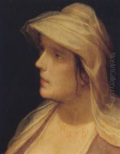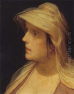 A Young Girl In A State Of Undress, Wearing A Burgundy Mantle, And A Gold Chain And Pendant