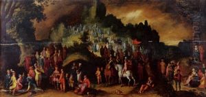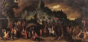 Die Predigt Johannes Des Taufers In Einer Waldlandschaft Mit Einem Schloss