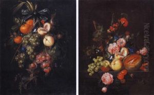 A Swag Of Oranges, Roses And Other Fruit And Flowers Hangin From A Bow With Butterflies, A Snail, A Bee And A Spider
