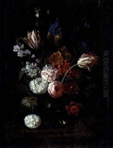 Nature Morte Au Perroquet Et A La Corbeille De Fruits Et De Fleurs