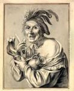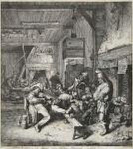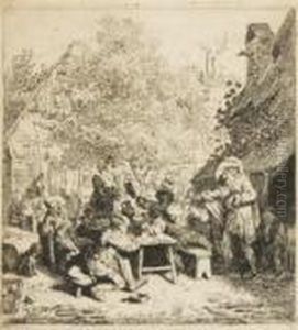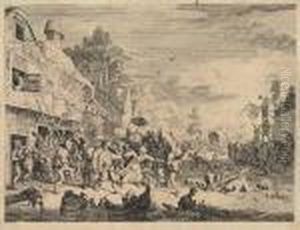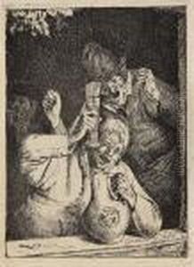 A Fish Seller At Work Outside A Cottage With A Group Of Other Figures