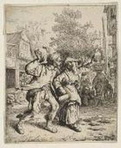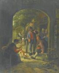 Peasants By A Doorway With A Pipe Player, Through An Openarch
