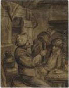 A Notary Reading A Letter To A Peasant Seated At A Table, Drinking And Smoking In An Interior