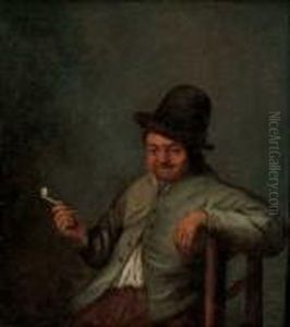 Un Paysan Assis Regardant En Bas A Droite, Tenant Un Pichet