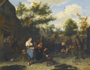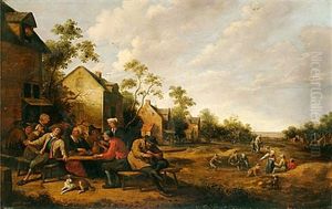 A Fiddler And Peasants Drinking And Carousing Outside A Village Inn