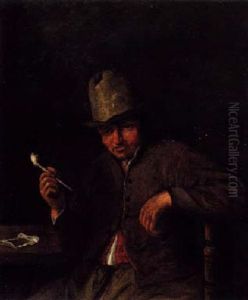A Peasant Holding A Wine Jug And A Pipe