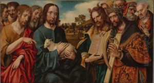 Christ on the Cross, with Mary, John, Mary Magdalene and Sts Cecilia and Barbara (left) and Peter, Francis and Jerome (right)