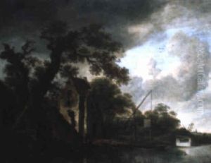 A River Landscape With Anglers Near A Cottage