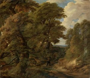 An Open Wooded Landscape With Figures On A Track