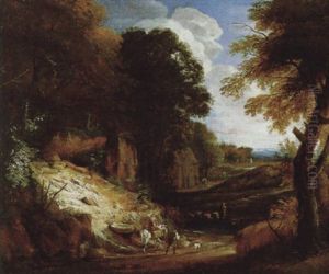 Wooded Landscape With Herders And Labourers
