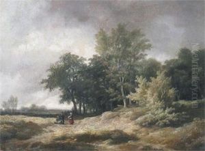 Bewaldete, Gebirgige Landschaft Mit Figuren