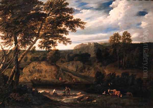 Bring the timeless beauty of Cornelis Huysmans's Fishermen on a river bank with a peasant woman and cattle in a meadow, a haybarge near a landing stage, in an Italianate landscape into your home with a handmade oil painting reproduction. Carefully recreated on canvas by skilled artists using traditional techniques, this piece captures the delicate brushwork, subtle light, and vibrant color of the original masterpiece. With museum-level quality and rich texture, it brings elegance and artistic depth to any space. Enjoy free shipping and make this masterpiece a part of your personal collection.