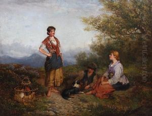 Paysage avec voyageurs se reposant au bord d'un chemin