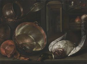 Cornelis Jacobsz Delff was a Dutch Golden Age painter who was born in 1570 in Gouda, Netherlands, and died in 1643. He is primarily known for his still-life works which include kitchen and banquet scenes that incorporate various food items, kitchenware, and sometimes figures. Despite not being as renowned as some of his contemporaries, Delff played a significant role in the development of still-life painting in the Netherlands.