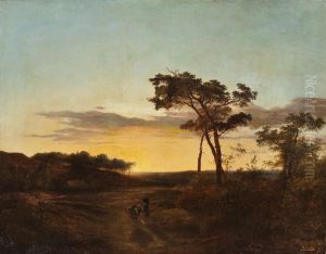 Peasant Travellers In An Extensive Landscape At Sunset