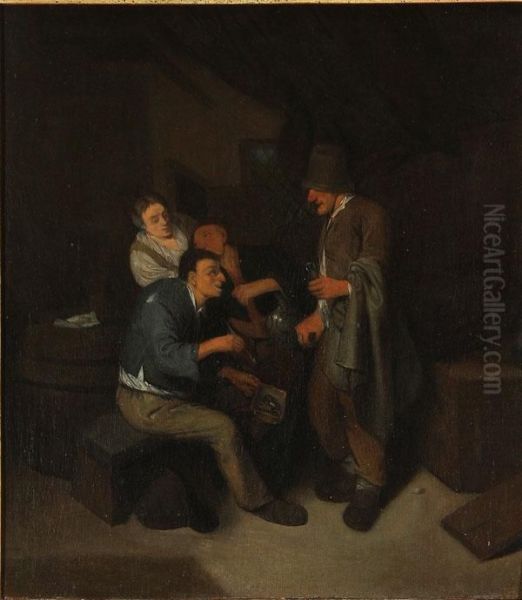 Interior Tavern Scene With Peasants Making Merry