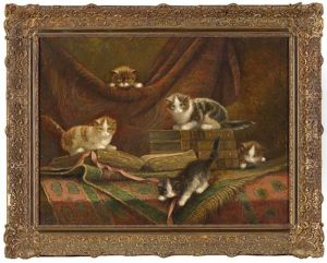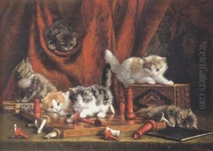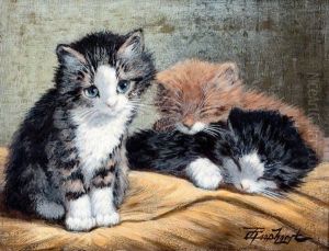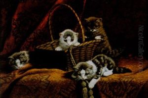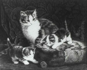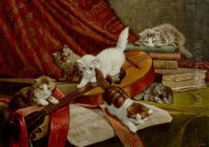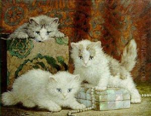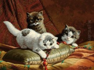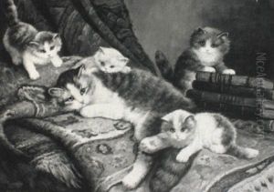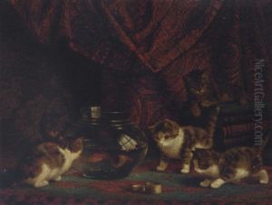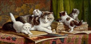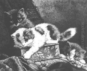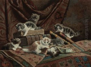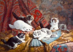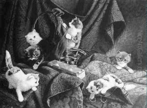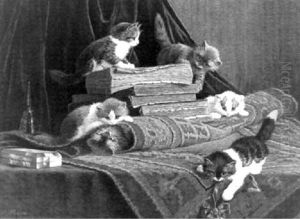 Kittens At Play In Front Of A Delft-blue Tiled Fireplace