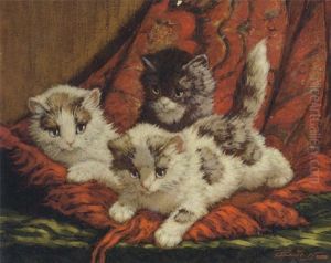 Drei Spielende Junge Katzchen Auf Rotem Tuch