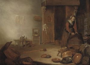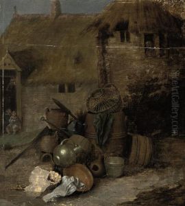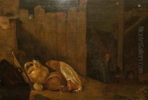 A Copper Jug, A Bucket Yoke, Mice And Other Vessels In A Barn