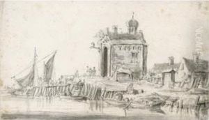 A Cattle Market By A Canal On The Outskirts Of A Town