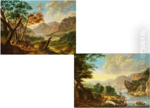 Gebirgslandschaft Mit Einem See Und Figurenstaffage