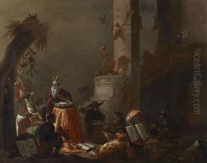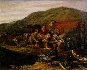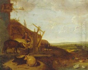Herdsmen With Pigs, A Cow And Fowl In A Landscape With Ruins