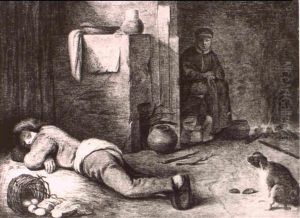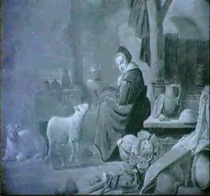A Shepherd And Shepherdesses With Cattle Outside A Barn