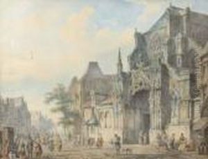 Many Figures On A Market Square In Front Of The St. Stevens Church, Nijmegen