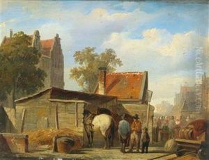 A View In A Street, Culemborg, With A Blacksmith At Work