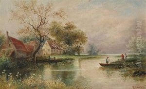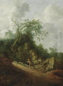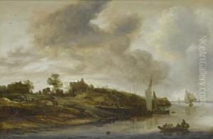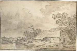 River Landscape With A Thatched Cottage Oil Painting by Cornelis Symonsz. Van Der Schalcke